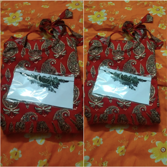 Aj ey jaumshut ta hate pelam just wow hoyeche quality niye ami sotti r kichu boltey chay tomar kach theke joto bar dress niy Toto bar ami eto besi setisfy hoy ki bolbo tomay suporna di R gift Tao khub sundor hoyeche love you didivai