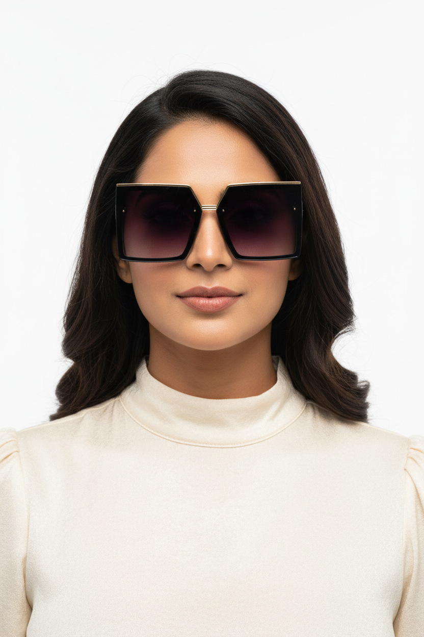 With premium metal accents and glossy black temples, this pair exudes celebrity-style sophistication. Comes with a stylish chain cover case, making it the perfect fashion accessory for any occasion.